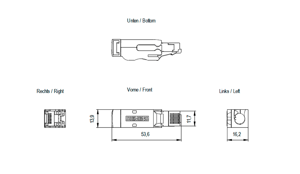 SIEMENS - IE FC RJ45 Plug 180 4x2, connettore RJ45, Cat6a, tecnica di collegam. FC, 50 pz 6GK19011BB122AE0