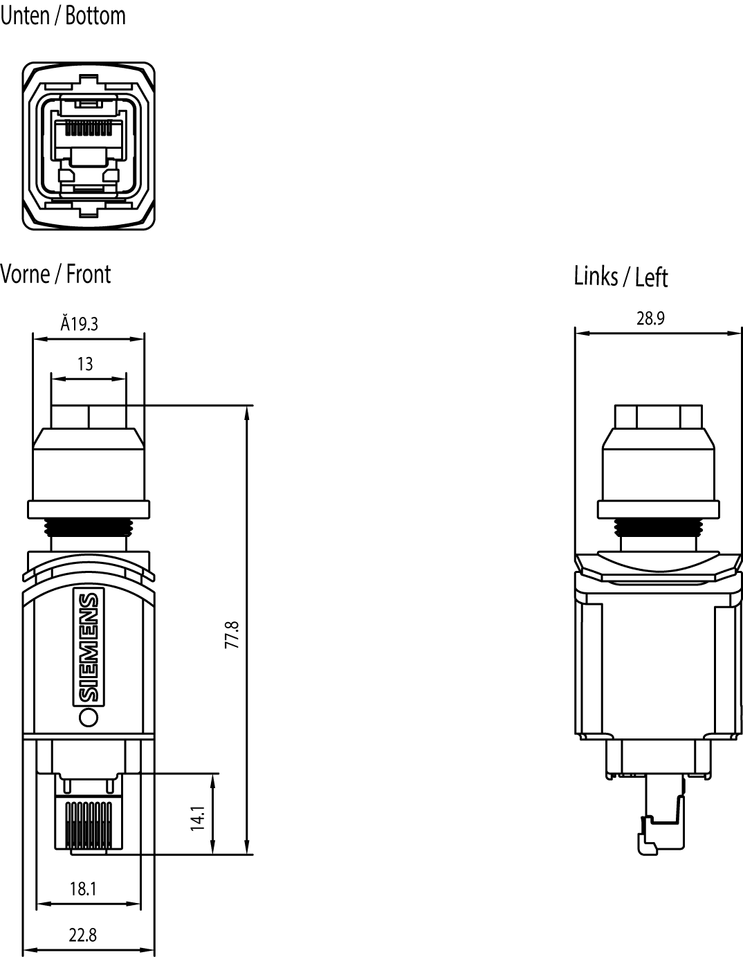 SIEMENS - IE FC RJ45 Plug PRO 4x2, connettore FastConnect push pull, IP65 6GK19011BB216AA0