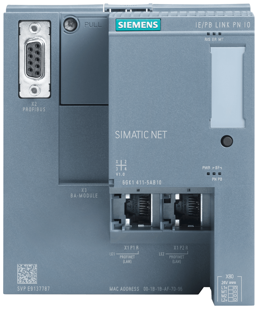 SIEMENS - IE/PB LINK PN IO, accoppiamento tra reti IE e PROFIBUS, con funzionalità PN IO 6AG14115AB102AA0