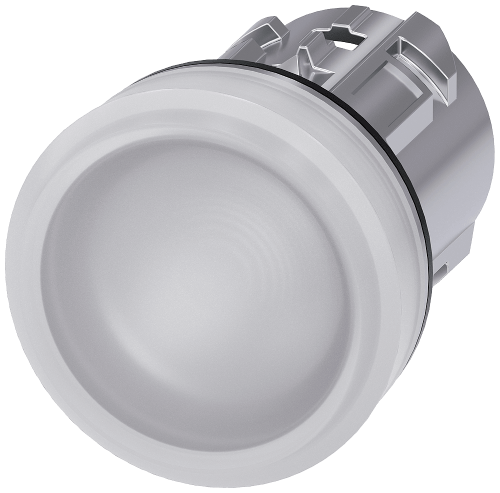 indicatore luminoso, 22 mm, rotondo, in metallo, lucido, bianco, lente, liscia Indicatore luminoso SIRIUS ACT per la segnalazione di stati di commutazione o guasti in impianti, con forte intensità luminosa grazie alla tecnologia LED ad efficienza energetica. Siemens offre, sotto il nome commerciale SIRIUS ACT, un portfolio esclusivo di dispositivi di comando e segnalazione con omologazioni di prodotto per il mercato mondiale in tre moderne serie di design in robusto metallo puro e plastica pregiata.L'innovativo concetto di innesto a scatto semplifica talmente il montaggio che per eseguirlo basta una sola mano e non servono attrezzi speciali. Per i fori di montaggio sono sufficienti semplici fori non scanalati, essendo già integrata una protezione antirotazione al 100 %.Grazie al grado di protezione elevato i robusti apparecchi sono adatti all'impiego industriale e in ambiente esterno. È persino possibile la pulizia con getto ad alta pressione. Né polvere, né oli, né liscivia possono comprometterne il funzionamento affidabile.Oltre che con il cablaggio standard, gli apparecchi possono essere collegati al controllore anche tramite PROFINET, AS-Interface oppure IO-Link. Potete così ridurre il vostro onere di cablaggio, minimizzare le fonti di errore e ottenere maggiore flessibilità.Il configuratore online grafico supporta in modo confortevole la scelta e l'ordinazione di singoli apparecchi, pulsantiere e iscrizioni. È disponibile una documentazione completa (ad es. manuale, dati 3D, schema di collegamento). Esecuzioni fornibili: più colori, diverse varianti di tensione. Avvertenza: Apparecchio singolo, supporti e moduli devono essere ordinati separatamente. SIRIUS ACT - Performance in Action nel comando e nella segnalazione. Semplici da montare, altamente performanti, semplicemente perfetti.