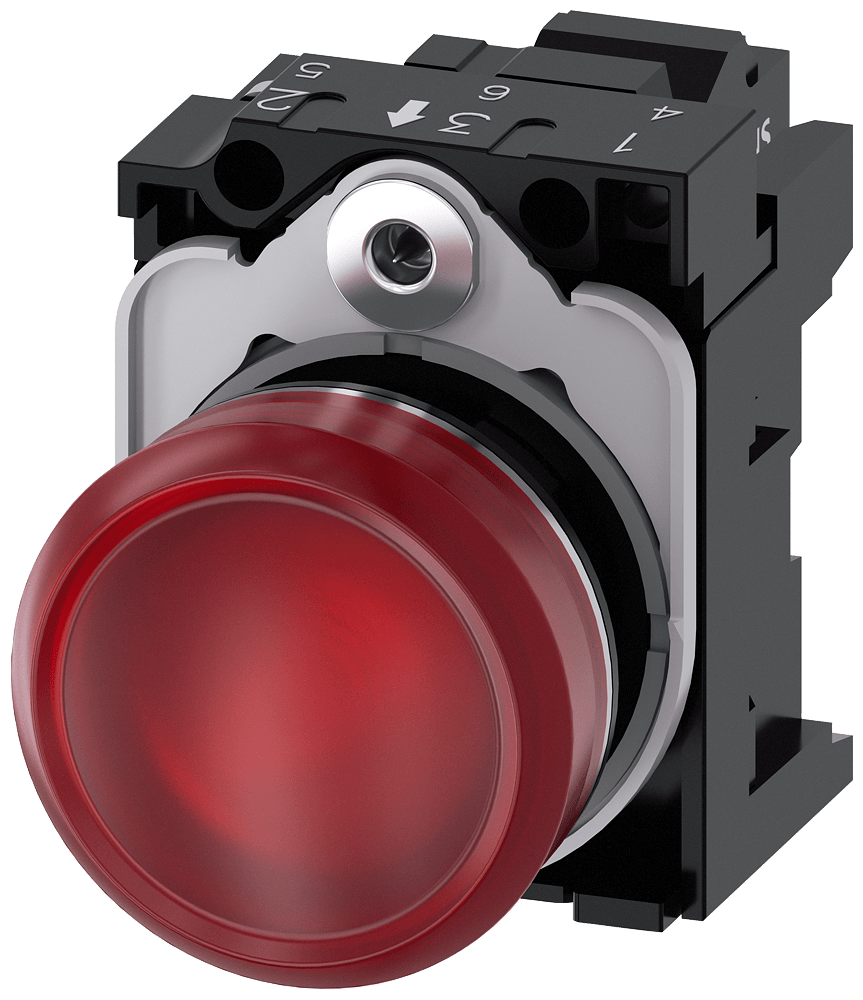 indicatore luminoso, 22 mm, rotondo, in metallo, lucido, rosso, lente, liscio, con supporto, modulo LED con LED integrato AC/DC 24V, morsetto a molla Indicatore luminoso SIRIUS ACT per la segnalazione di stati di commutazione o guasti in impianti, con forte intensità luminosa grazie alla tecnologia LED ad efficienza energetica. Siemens offre, sotto il nome commerciale SIRIUS ACT, un portfolio esclusivo di dispositivi di comando e segnalazione con omologazioni di prodotto per il mercato mondiale in tre moderne serie di design in robusto metallo puro e plastica pregiata.L'innovativo concetto di innesto a scatto semplifica talmente il montaggio che per eseguirlo basta una sola mano e non servono attrezzi speciali. Per i fori di montaggio sono sufficienti semplici fori non scanalati, essendo già integrata una protezione antirotazione al 100 %.Grazie al grado di protezione elevato i robusti apparecchi sono adatti all'impiego industriale e in ambiente esterno. È persino possibile la pulizia con getto ad alta pressione. Né polvere, né oli, né liscivia possono comprometterne il funzionamento affidabile.Oltre che con il cablaggio standard, gli apparecchi possono essere collegati al controllore anche tramite PROFINET, AS-Interface oppure IO-Link. Potete così ridurre il vostro onere di cablaggio, minimizzare le fonti di errore e ottenere maggiore flessibilità.Il configuratore online grafico supporta in modo confortevole la scelta e l'ordinazione di singoli apparecchi, pulsantiere e iscrizioni. È disponibile una documentazione completa (ad es. manuale, dati 3D, schema di collegamento). Esecuzioni fornibili: più colori, diverse varianti di tensione. Avvertenza: Apparecchio completo, fornitura incl. supporto e moduli. SIRIUS ACT - Performance in Action nel comando e nella segnalazione. Semplici da montare, altamente performanti, semplicemente perfetti.