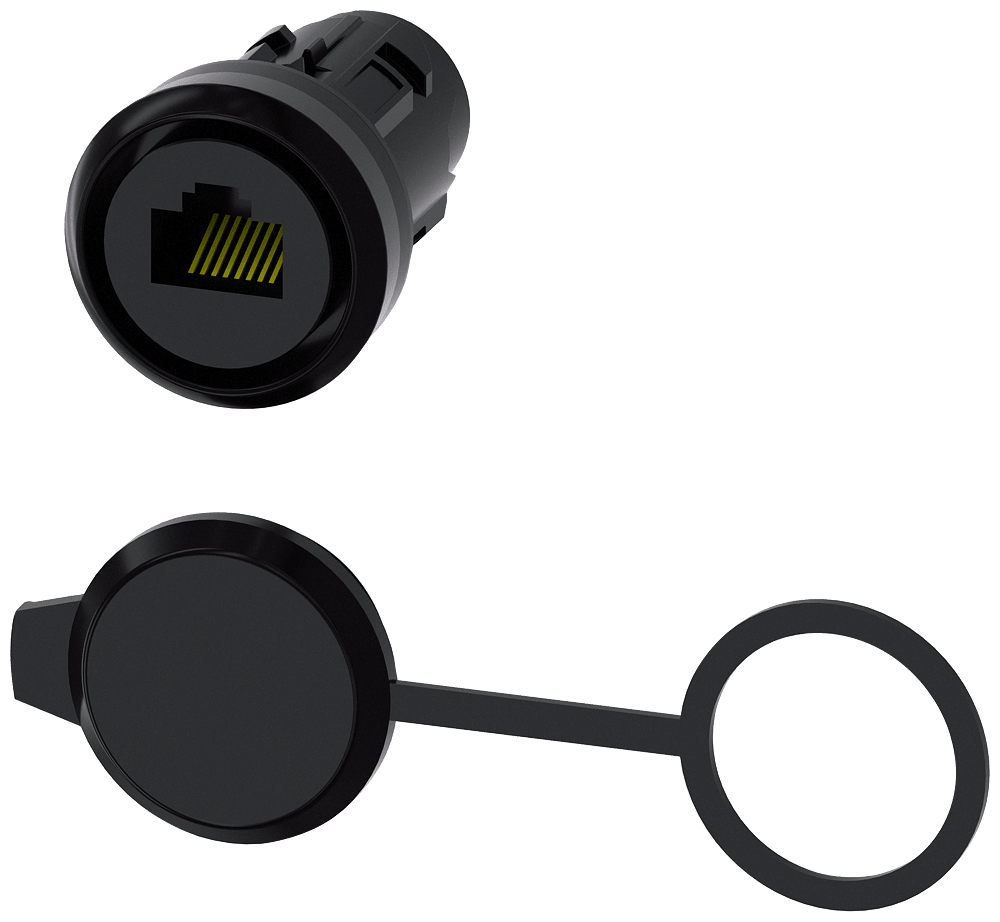 Collegamento RJ45, 22 mm, plastica, nero Connessione RJ45 come accessori per dispositivi di comando e segnalazione SIRIUS ACT. Siemens offre, sotto il nome commerciale SIRIUS ACT, un portfolio esclusivo di dispositivi di comando e segnalazione con omologazioni di prodotto per il mercato mondiale in tre moderne serie di design in robusto metallo puro e plastica pregiata.L'innovativo concetto di innesto a scatto semplifica talmente il montaggio che per eseguirlo basta una sola mano e non servono attrezzi speciali. Per i fori di montaggio sono sufficienti semplici fori non scanalati, essendo già integrata una protezione antirotazione al 100 %.Grazie al grado di protezione elevato i robusti apparecchi sono adatti all'impiego industriale e in ambiente esterno. È persino possibile la pulizia con getto ad alta pressione. Né polvere, né oli, né liscivia possono comprometterne il funzionamento affidabile.Oltre che con il cablaggio standard, gli apparecchi possono essere collegati al controllore anche tramite PROFINET, AS-Interface oppure IO-Link. Potete così ridurre il vostro onere di cablaggio, minimizzare le fonti di errore e ottenere maggiore flessibilità.Il configuratore online grafico supporta in modo confortevole la scelta e l'ordinazione di singoli apparecchi, pulsantiere e iscrizioni. È disponibile una documentazione completa (ad es. manuale, dati 3D, schema di collegamento). Ampia gamma di accessori opzionali (ad es. targhette identificative, per protezione e accesso, operatori, accessori per pulsantiere). SIRIUS ACT - Performance in Action nel comando e nella segnalazione. Semplici da montare, altamente performanti, semplicemente perfetti.