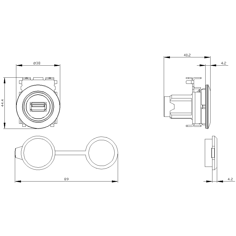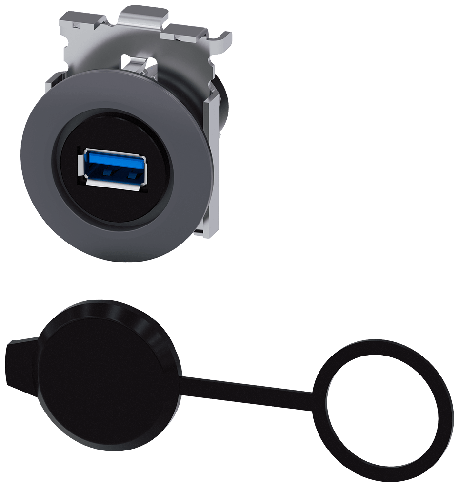 Collegamento USB, 30 mm, metallo opaco, grigio sabbia Connessione USB come accessori per dispositivi di comando e segnalazione SIRIUS ACT. Siemens offre, sotto il nome commerciale SIRIUS ACT, un portfolio esclusivo di dispositivi di comando e segnalazione con omologazioni di prodotto per il mercato mondiale in tre moderne serie di design in robusto metallo puro e plastica pregiata.L'innovativo concetto di innesto a scatto semplifica talmente il montaggio che per eseguirlo basta una sola mano e non servono attrezzi speciali. Per i fori di montaggio sono sufficienti semplici fori non scanalati, essendo già integrata una protezione antirotazione al 100 %.Grazie al grado di protezione elevato i robusti apparecchi sono adatti all'impiego industriale e in ambiente esterno. È persino possibile la pulizia con getto ad alta pressione. Né polvere, né oli, né liscivia possono comprometterne il funzionamento affidabile.Oltre che con il cablaggio standard, gli apparecchi possono essere collegati al controllore anche tramite PROFINET, AS-Interface oppure IO-Link. Potete così ridurre il vostro onere di cablaggio, minimizzare le fonti di errore e ottenere maggiore flessibilità.Il configuratore online grafico supporta in modo confortevole la scelta e l'ordinazione di singoli apparecchi, pulsantiere e iscrizioni. È disponibile una documentazione completa (ad es. manuale, dati 3D, schema di collegamento). Ampia gamma di accessori opzionali (ad es. targhette identificative, per protezione e accesso, operatori, accessori per pulsantiere). SIRIUS ACT - Performance in Action nel comando e nella segnalazione. Semplici da montare, altamente performanti, semplicemente perfetti.