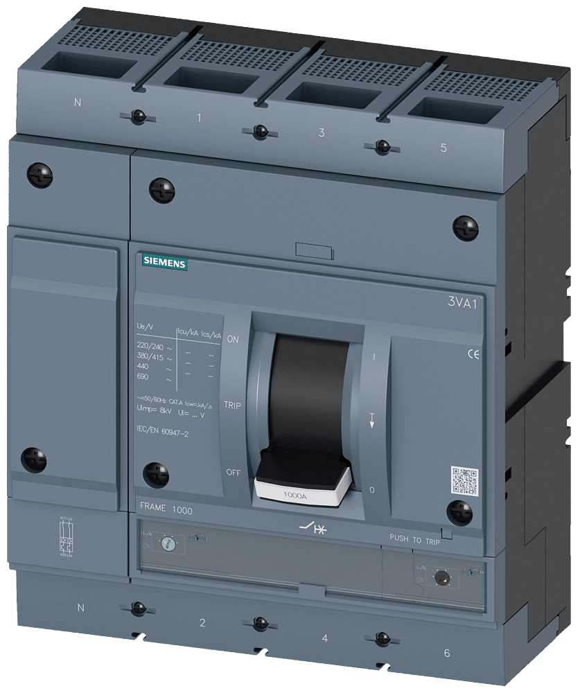 SIEMENS - Interruttore automatico 3VA1 IEC Frame 1000, classe del potere di interruzione M, Icu=55 kA con 415 V 3VA15805EF420AA0