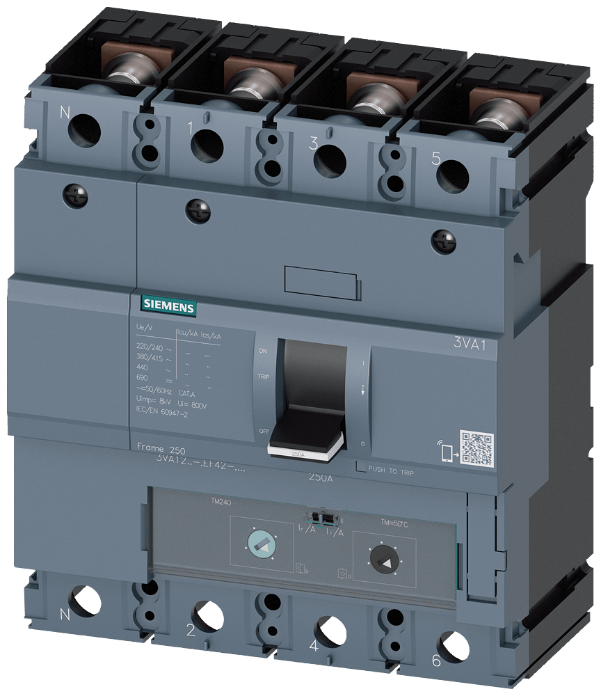 SIEMENS - Interruttore automatico 3VA1 IEC Frame 250, classe del potere di interruzione S, Icu=36 kA con 415 V 3VA12164EF420AA0