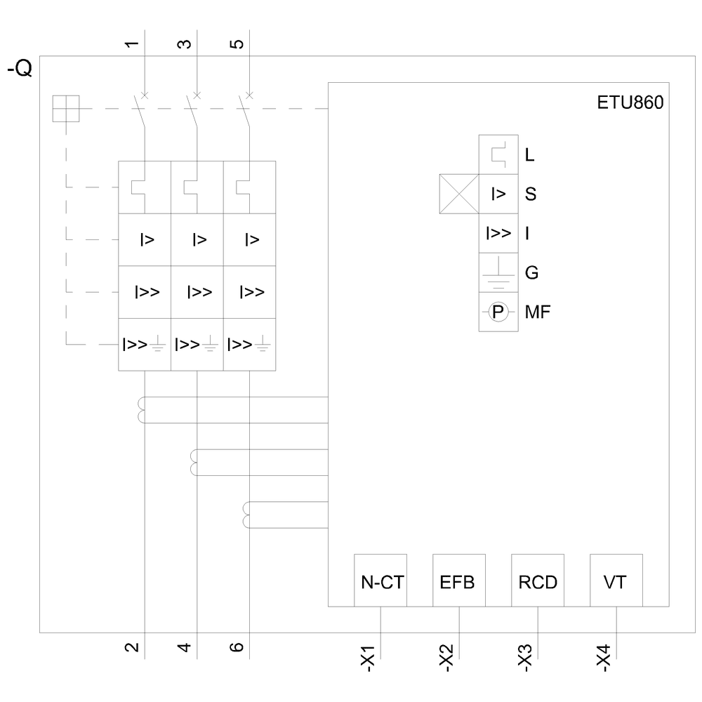 SIEMENS - interruttore automatico 3VA2 IEC frame 100 classe del potere di interruzione H Icu=85kA con 415V a 3 poli, protezione impianto ETU860, LSIG, In=63A... 3VA20636KQ360AA0