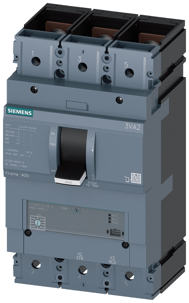 SIEMENS - interruttore automatico 3VA2 IEC frame 400 classe del potere di interruzione L Icu=150kA con 415V a 3 poli, protezione impianto ETU340, ELISA LI, I... 3VA23258HK320AA0