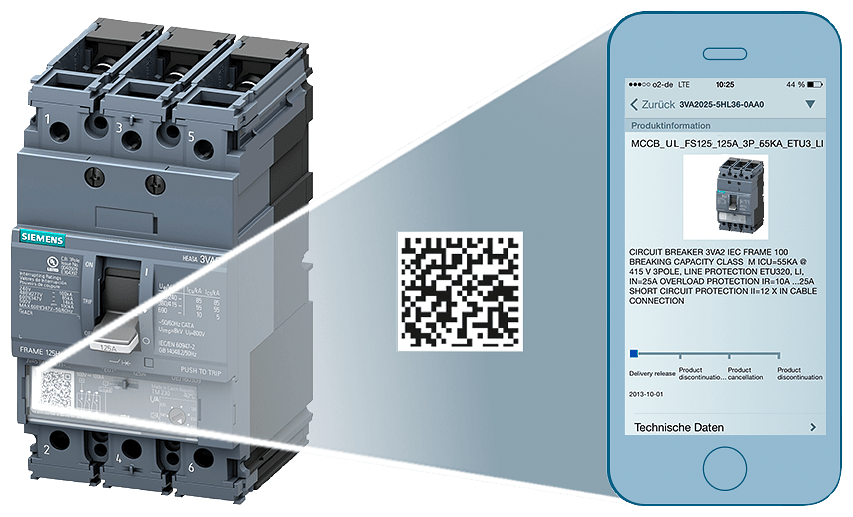 SIEMENS - Interruttore automatico 3VA5 UL Frame 125 classe del potere di interruzione H 65 kA con 480 V a 2 poli 3VA51306ED210AA0