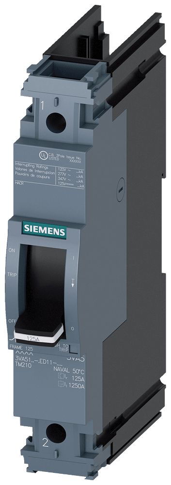 SIEMENS - Interruttore automatico 3VA5 UL Frame 125 classe del potere di interruzione S 25 kA con 277 V a 1 polo