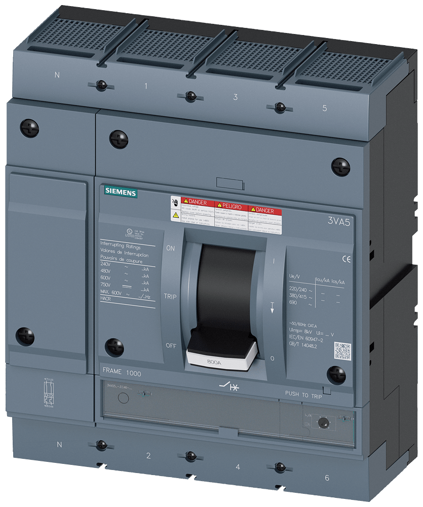 SIEMENS - Interruttore automatico 3VA5 UL Frame 800 classe del potere di interruzione C 100 kA con 480V a 4 poli 3VA55707EC460AA0