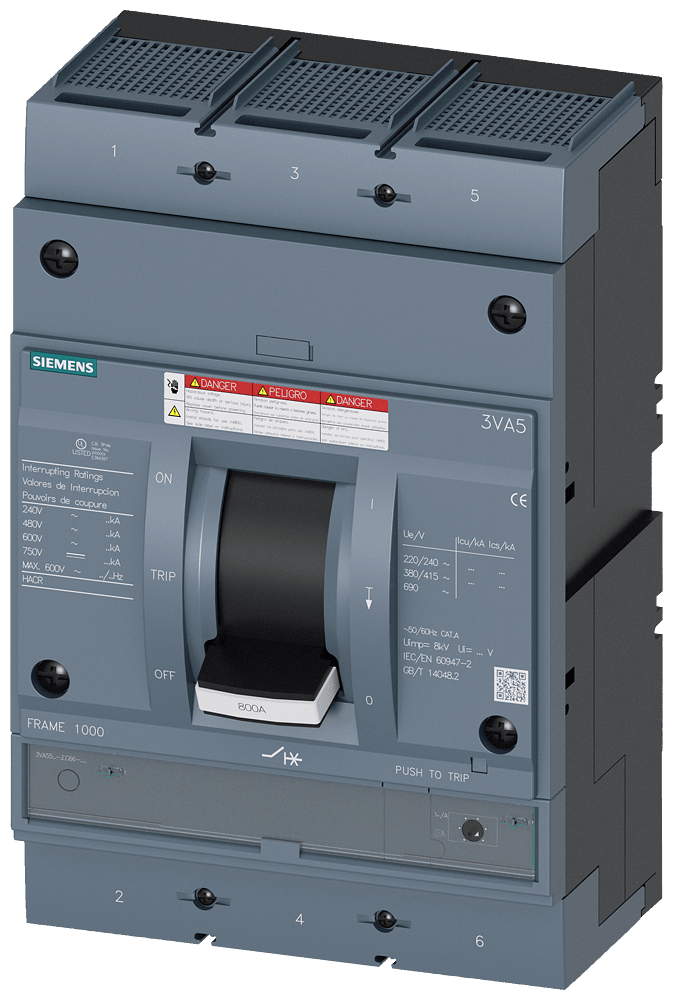 SIEMENS - Interruttore automatico 3VA5 UL Frame 800 classe del potere di interruzione C 100kA con 480V 2 poli