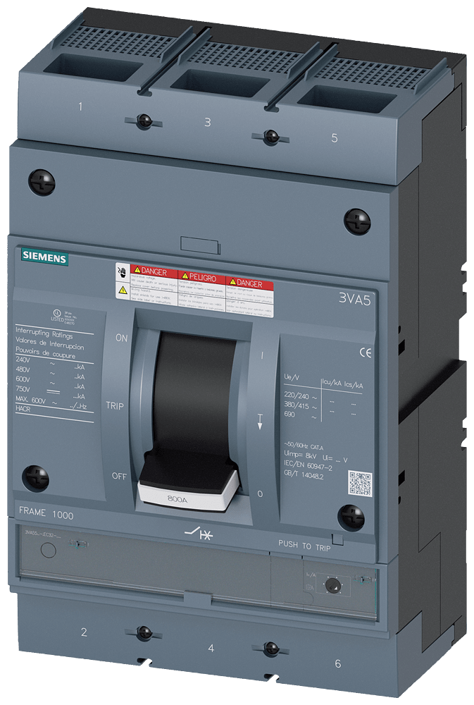 SIEMENS - Interruttore automatico 3VA5 UL Frame 800 classe del potere di interruzione M 35 kA con 480V a 3 poli 3VA55605EC322AA0