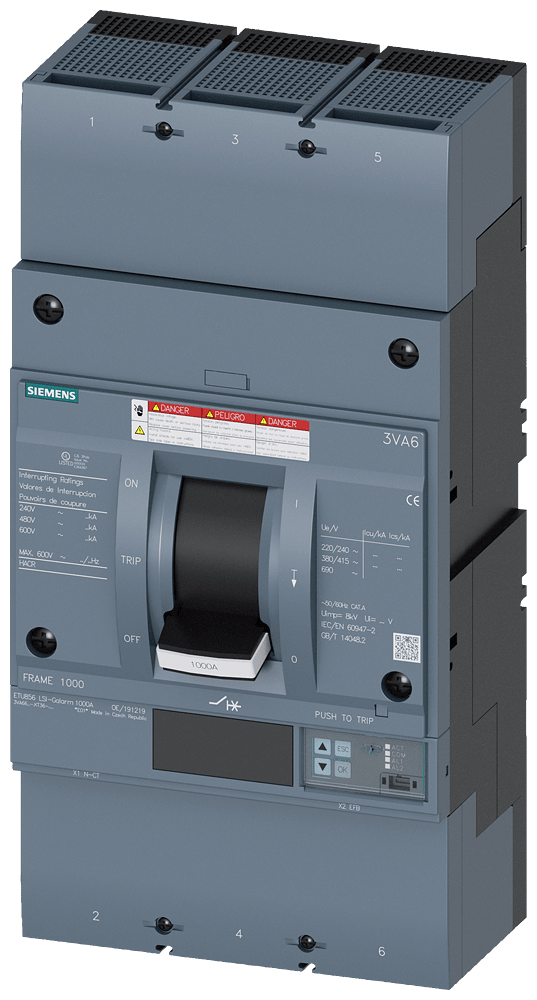 SIEMENS - Interruttore automatico 3VA6 UL Frame 1000, classe del potere di interruzione C, 100 kA con 480 V