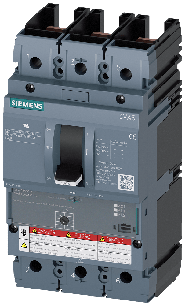 SIEMENS - Interruttore automatico 3VA6 UL Frame 150 a 3 poli, protezione avviatore ETU310M, I, In=40 A 3VA61401MS310AA0
