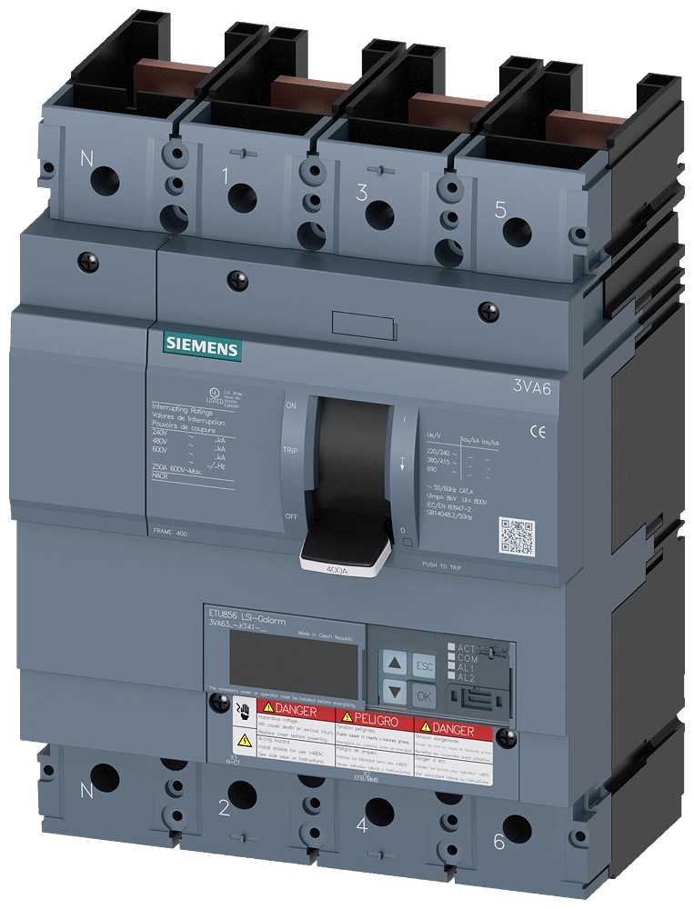 SIEMENS - Interruttore automatico 3VA6 UL Frame 400, classe del potere di interruzione L, 150 kA con 480 V a 4 poli 3VA63408KT410AA0