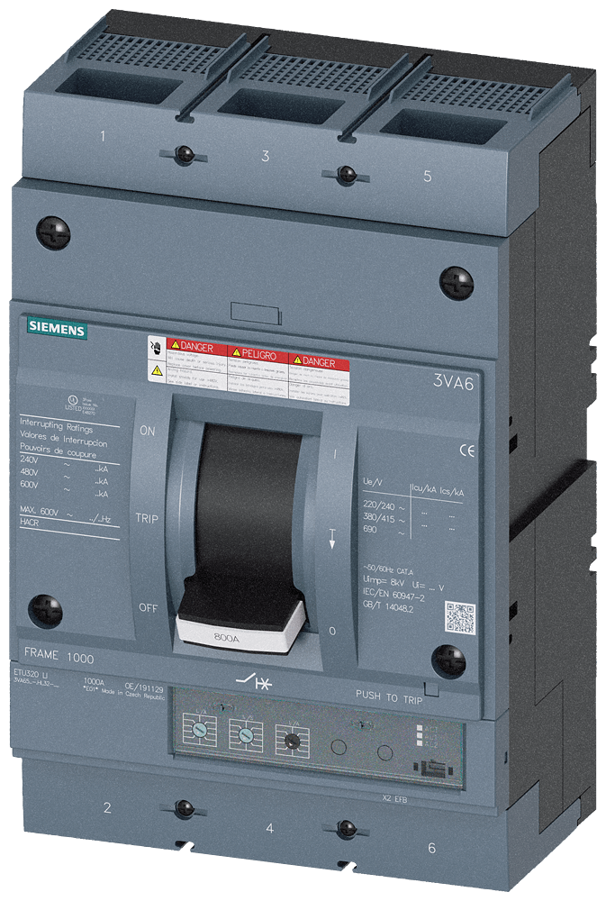 SIEMENS - Interruttore automatico 3VA6 UL Frame 800, classe del potere di interruzione C, 100 kA con 480 V a 3 poli 3VA65807HL322AA0