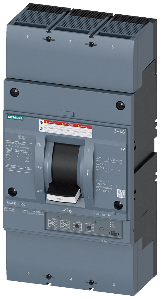 SIEMENS - Interruttore automatico 3VA6 UL Frame 800, classe del potere di interruzione C, 100 kA con 480 V a 3 poli 3VA65807HN362AA0