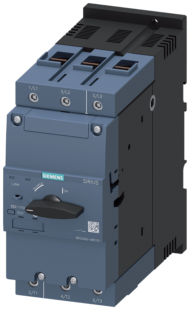 interruttore automatico grandezza costruttiva S3 per avviatore combinato corrente nominale 84 A sganciatore N 1170 A morsetto a vite potere di interruzione elevato 100 kA Interruttore automatico SIRIUS 3RV2 Per avviatori combinati per la protezione sicura da cortocircuito degli utilizzatori e per la separazione sicura dalla rete. Gli interruttori automatici compatti e tropicalizzati sono ottimizzati, grazie alla loro bassa dispersione termica, per l'impiego in partenze, naturalmente anche per motori IE3/IE4 e in egual misura per la commutazione di corrente continua. Sono ovviamente disponibili omologazioni internazionali (ad es. IEC e UL/CSA) ed esecuzioni per applicazioni in aree a rischio di esplosione (ATEX o IEC Ex). Sono disponibili varianti di apparecchio per la protezione motore (anche con funzione di relè di sovraccarico), protezione impianto, protezione da cortocircuito di avviatori combinati, protezione trasformatore. come interruttore principale e di ARRESTO DI EMERGENZA e per l'impiego in reti IT. Essi sono disponibili con morsetti a vite o a molla per un collegamento rapido, esente da manutenzione e resistente alle vibrazioni nonché a scelta con blocchetto di contatti ausiliari incorporato. Tutti gli accessori come ad es. i blocchetti di contatti ausiliari, gli sganciatori ausiliari, i blocchetti di contatti di segnalazione etc. sono uniformemente adatti per tutte le grandezze costruttive. Le diverse possibilità di alimentazione di energia, come il sistema di alimentazione SIRIUS 3RV29, riducono notevolmente il cablaggio del circuito principale. Gli interruttori automatici 3RV2 sostituiscono la comprovata serie costruttiva 3RV1. Semplice, efficiente, sempre attuale- il sistema modulare SIRIUS.