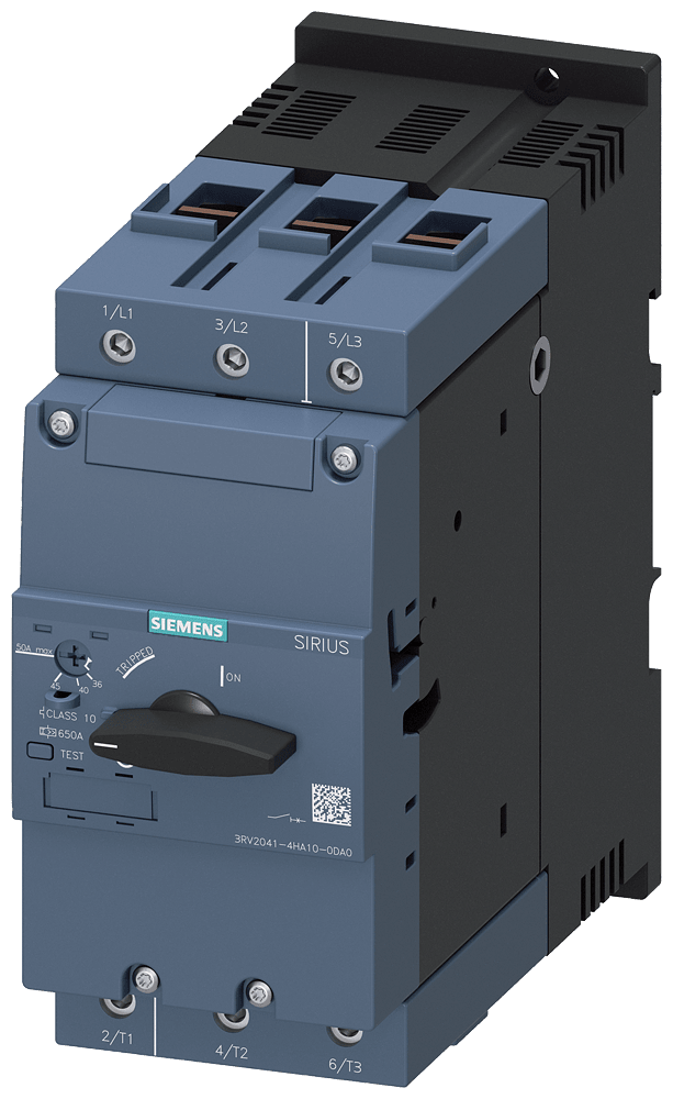 SIEMENS - Interruttore automatico, S3, per prot. impianto, CLASS 10, sganciatore term. di sovraccarico 36 ... 50 A, sganciatore elettrom. di sovraccarico 650 A 3RV20414HA100DA0