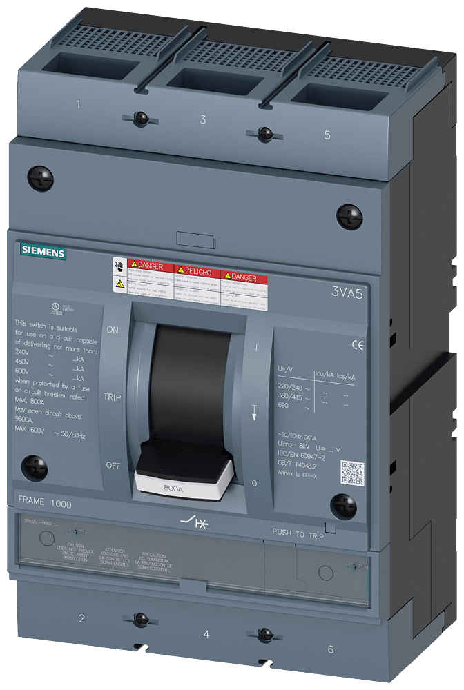 SIEMENS - Interruttore automatico scatolato 3VA5 UL Frame 800 max. potere di interruzione in cortocircuito 100kA