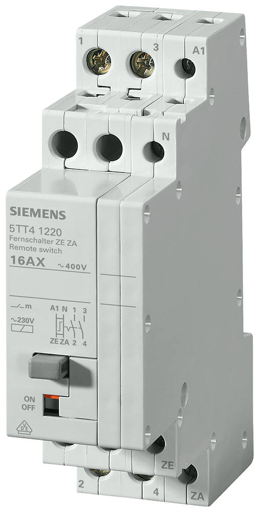 SIEMENS - Interruttore con comando a distanza con 2 contatti NO, con funzione ON-OFF centrale, contatto per AC 230 V 5TT41222