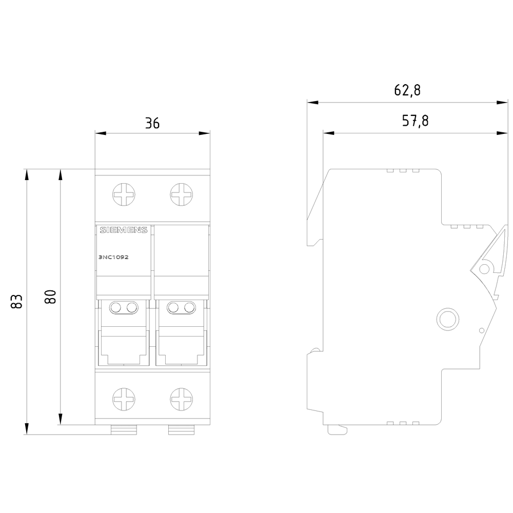 SIEMENS - Interruttore di manovra-fusibile SITOR 10 x 38, fino a 32 A, AC 690 V, a 2 poli 3NC1092