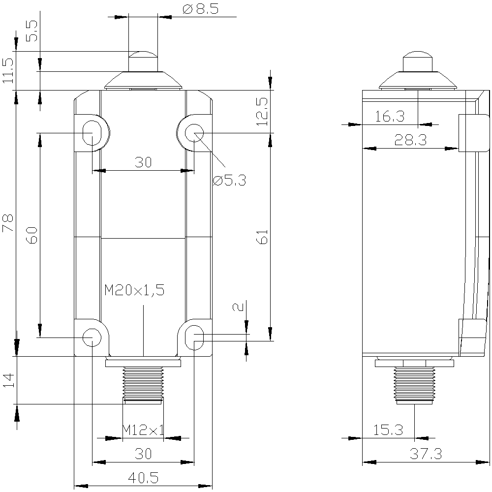 SIEMENS - Interruttore di posizione con pulsante semplice, custodia in metallo 40 mm, EN 50041, 1NO/2NC, a 5 poli