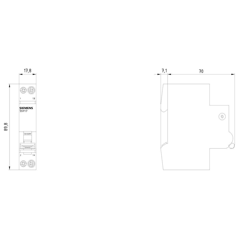 SIEMENS - Interruttore di protezione apparecchi a 1 polo con blocchetto di contatti ausiliari, contatto NO, caratteristica F1, 1 A 5SY17012