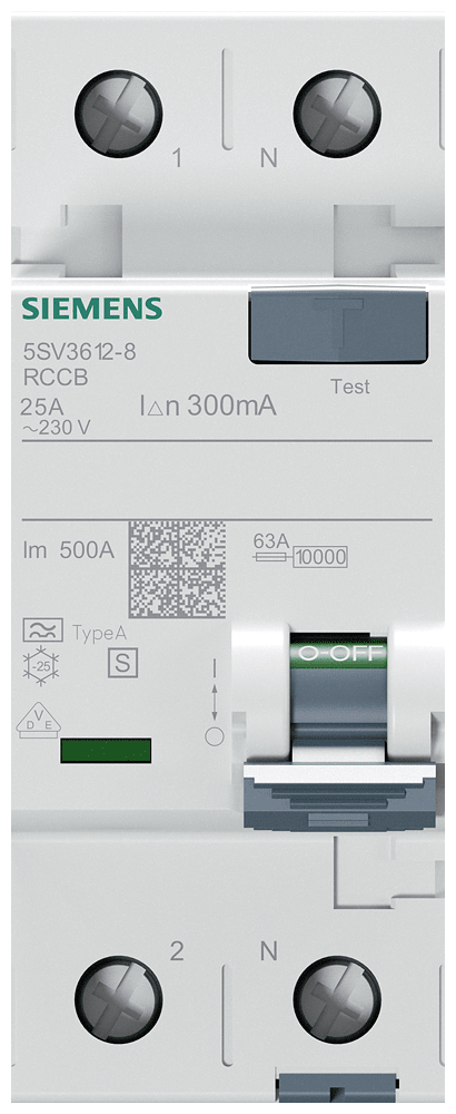 SIEMENS - Interruttore differenziale, a 2 poli, tipo A, selettivo, In: 25 A, 300 mA, Un AC: 230 V