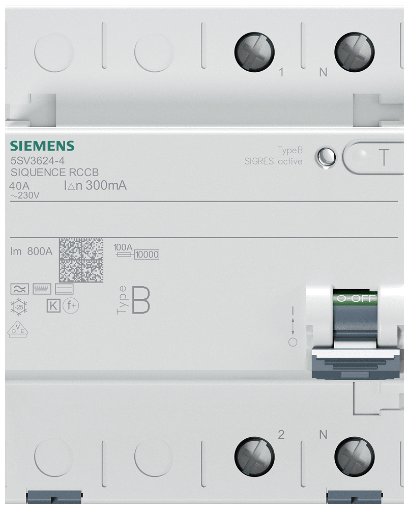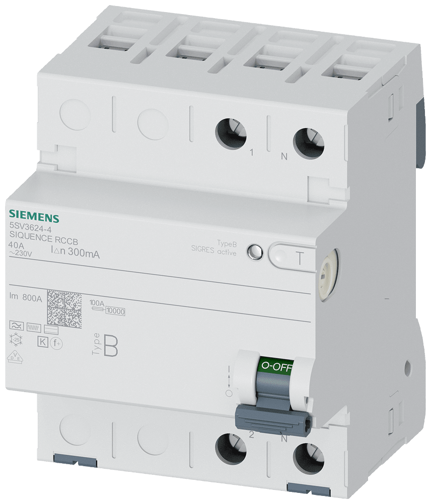 SIEMENS - Interruttore differenziale, a 2 poli, tipo B, con breve ritardo, In: 40 A, 300 mA 5SV36244