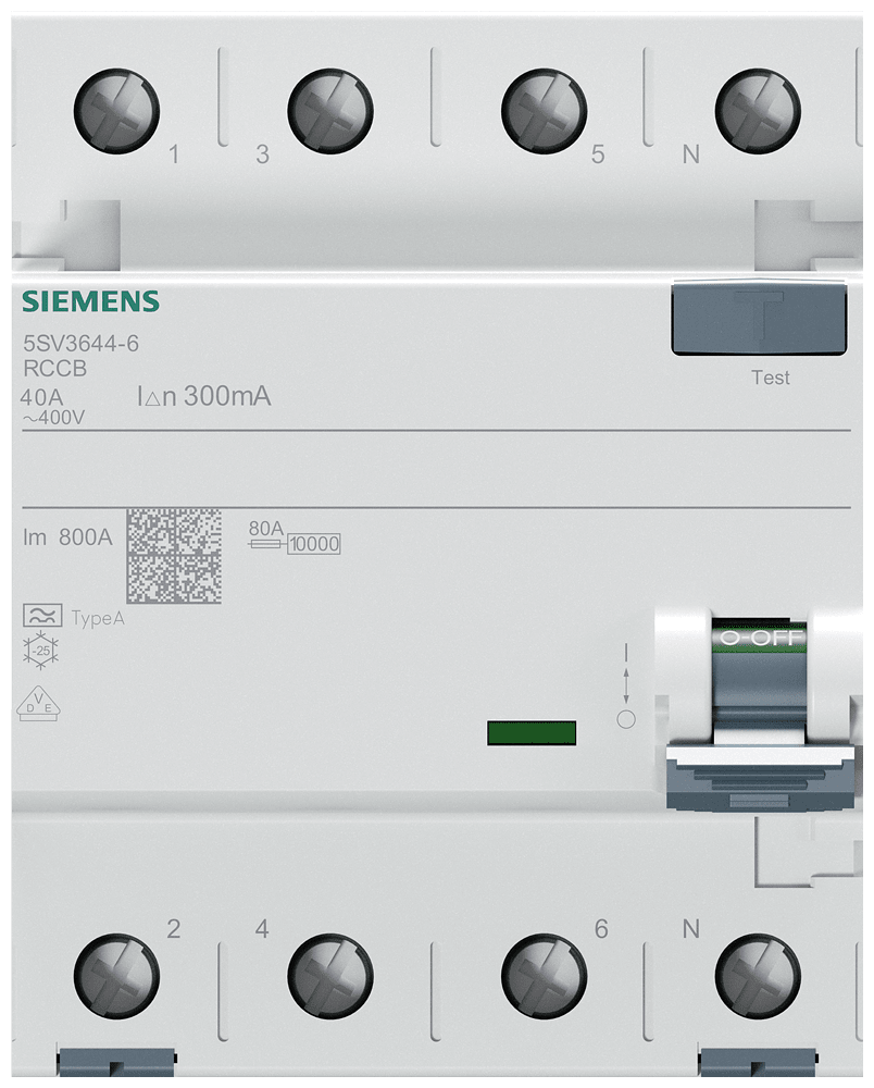 SIEMENS - Interruttore differenziale, a 4 poli, tipo A, In: 40 A, 300 mA, Un AC: 400 V