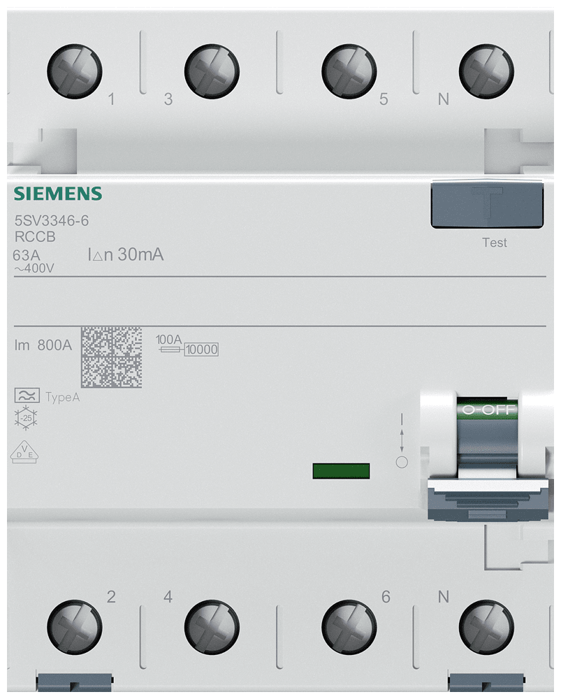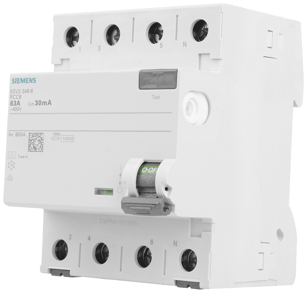 SIEMENS - Interruttore differenziale, a 4 poli, tipo A, In: 63 A, 30 mA, Un AC: 400 V