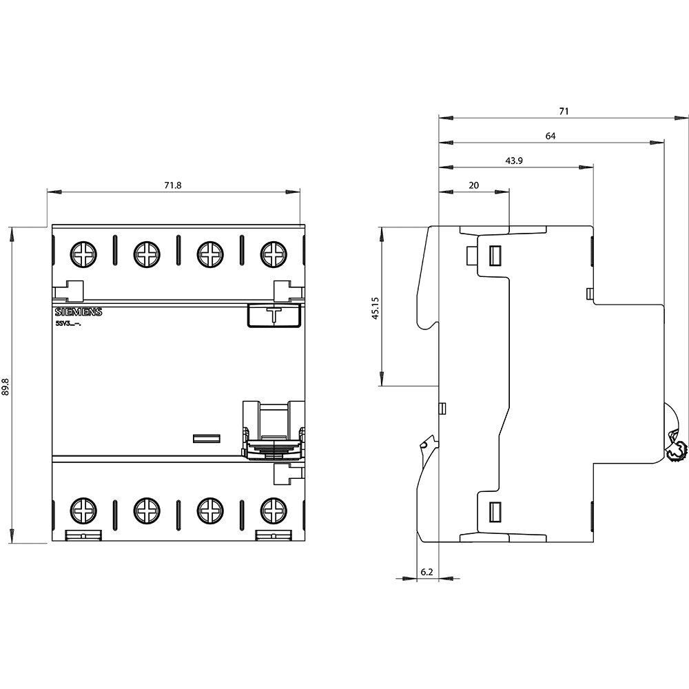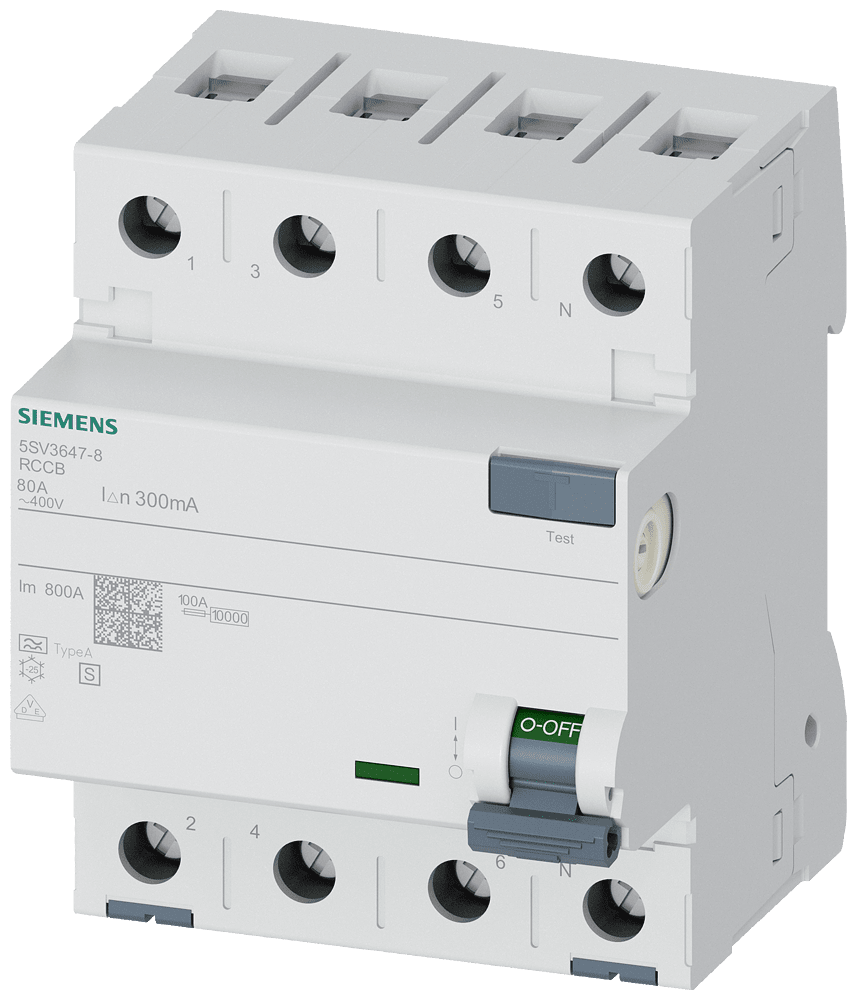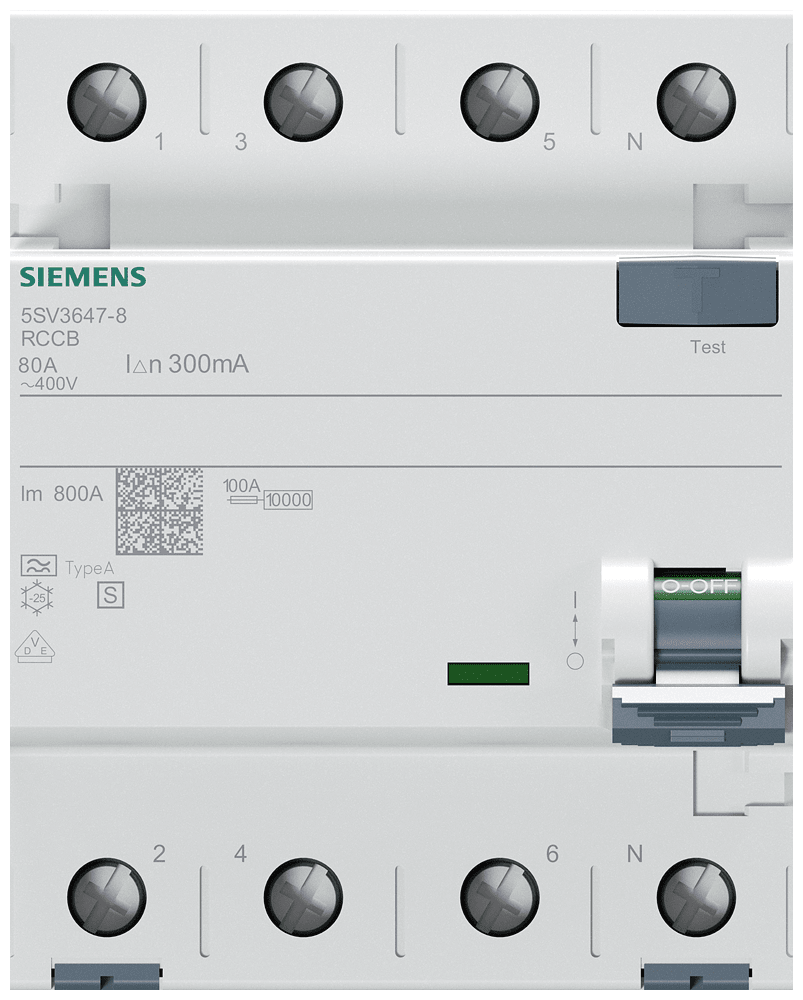 SIEMENS - Interruttore differenziale, a 4 poli, tipo A, selettivo, In: 80 A, 300 mA, Un AC: 400 V 5SV36478