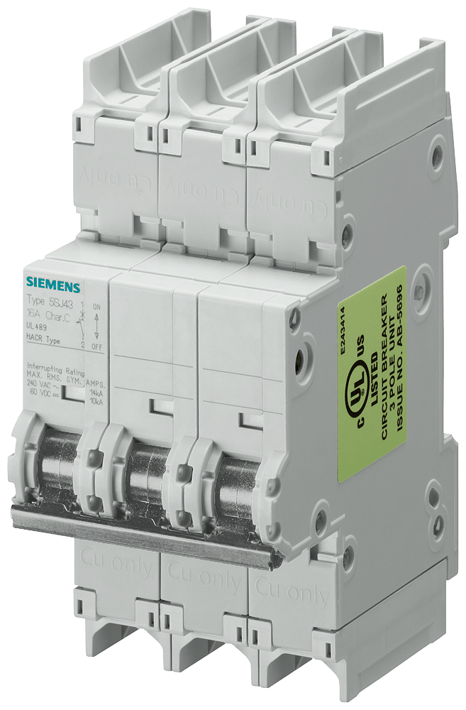SIEMENS - Interruttore magnetotermico 240 V 14 kA, a 3 poli, D, 3 A, P=70 mm secondo UL 489 5SJ43038HG41