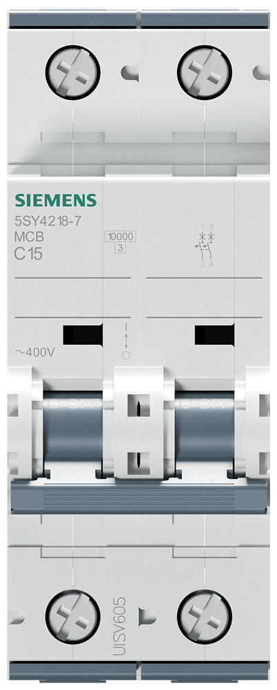 SIEMENS - Interruttore magnetotermico 400 V 10 kA, a 2 poli, C, 15 A, P=70 mm