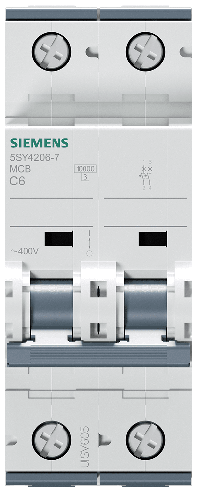 Interruttore magnetotermico 400V 10 kA, a 2 poli, C, 6A, P=70mm Interruttore magnetotermico SENTRON 5SY per la protezione da cortocircuito e sovraccarico sicura in edifici residenziali, funzionali e per applicazioni industriali specifiche. Montaggio e smontaggio dell'apparecchio senza attrezzi con l'ausilio di un cursore doppio. Combinazione qualsiasi di conduttori e sbarra collettrice grazie al morsetto a doppia camera. Semplice cablaggio dell'alimentazione mediante la sbarra collettrice posteriore. Gli interruttori magnetotermici 5SY sono disponibili in esecuzione a 1, 2, 3, 4 poli nonché a 1 polo +N e a 3 poli +N. Tutti gli accessori sono uniformemente utilizzabili per tutti gli interruttori magnetotermici 5SY. Semplicemente sicuri con gli apparecchi di protezione di SENTRON.