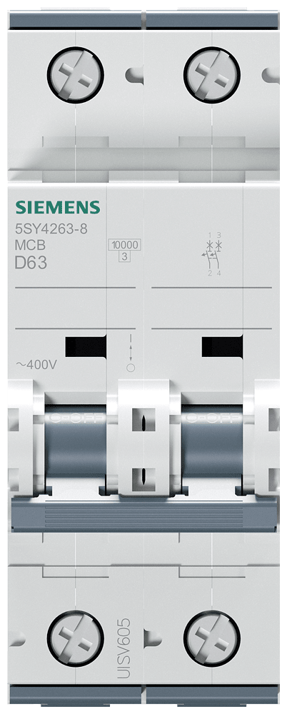 SIEMENS - Interruttore magnetotermico 400 V 10 kA, a 2 poli, D, 63 A, P=70 mm 5SY42638
