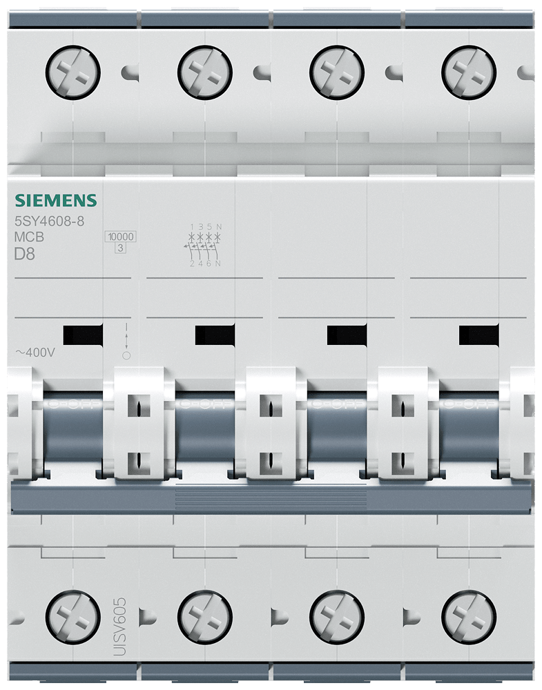 SIEMENS - Interruttore magnetotermico 400 V 10 kA, a 3+N poli, D, 8 A, P=70 mm 5SY46088