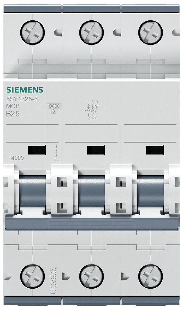 SIEMENS - Interruttore magnetotermico 400 V 10 kA, a 3 poli, B, 25 A, P=70 mm 5SY43256