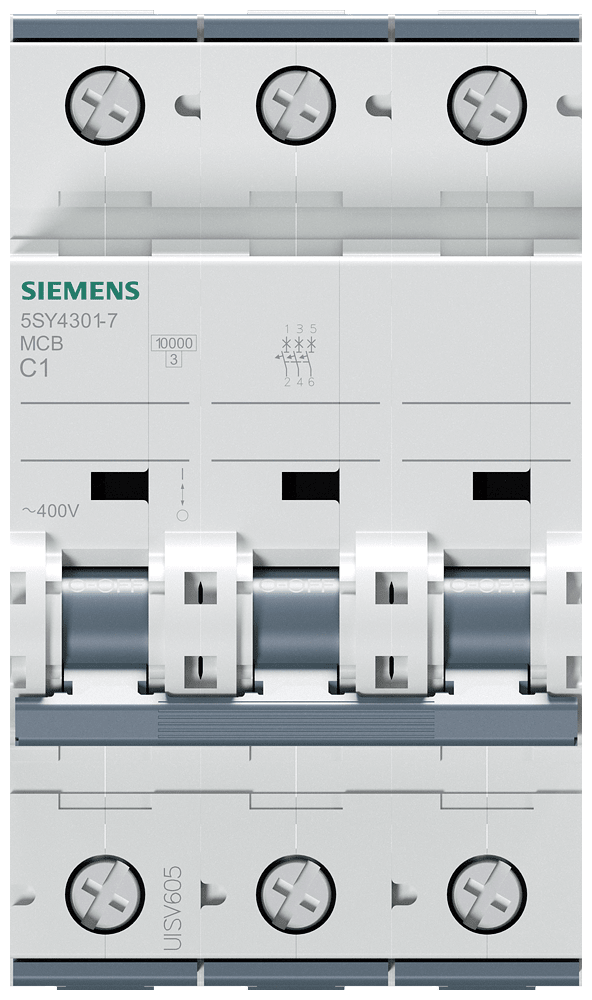 SIEMENS - Interruttore magnetotermico 400 V 10 kA, a 3 poli, C, 1 A, P=70 mm 5SY43017