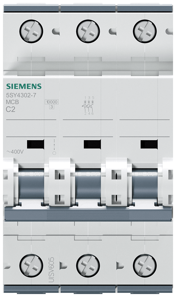 Interruttore magnetotermico 400V 10 kA, a 3 poli, C, 2 A, P=70mm Interruttore magnetotermico SENTRON 5SY per la protezione da cortocircuito e sovraccarico sicura in edifici residenziali, funzionali e per applicazioni industriali specifiche. Montaggio e smontaggio dell'apparecchio senza attrezzi con l'ausilio di un cursore doppio. Combinazione qualsiasi di conduttori e sbarra collettrice grazie al morsetto a doppia camera. Semplice cablaggio dell'alimentazione mediante la sbarra collettrice posteriore. Gli interruttori magnetotermici 5SY sono disponibili in esecuzione a 1, 2, 3, 4 poli nonché a 1 polo +N e a 3 poli +N. Tutti gli accessori sono uniformemente utilizzabili per tutti gli interruttori magnetotermici 5SY. Semplicemente sicuri con gli apparecchi di protezione di SENTRON.