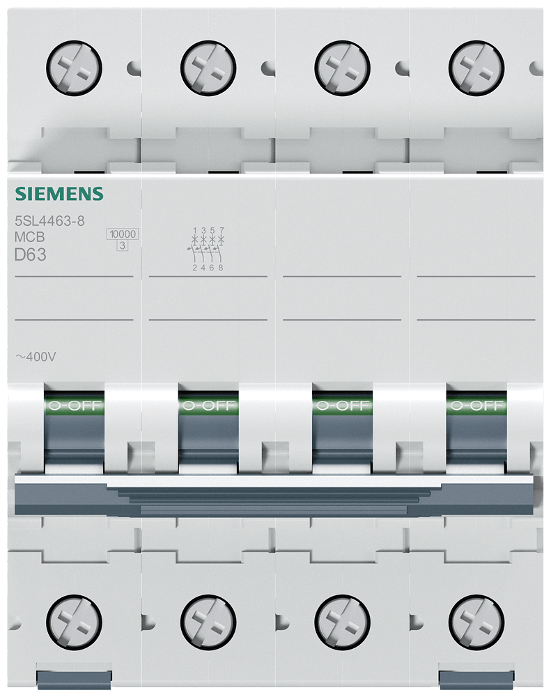 SIEMENS - Interruttore magnetotermico 400 V 10 kA, a 4 poli, D, 63 A 5SL44638