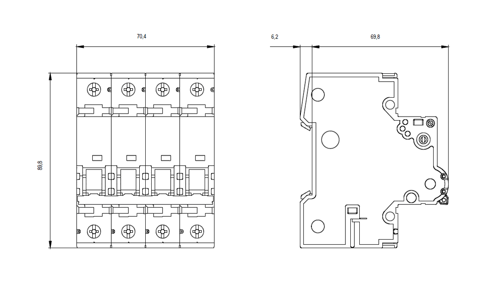 Interruttore magnetotermico 400V 6kA, a 3+N poli B, 16A, P=70mm Interruttore magnetotermico SENTRON 5SY per la protezione da cortocircuito e sovraccarico sicura in edifici residenziali, funzionali e per applicazioni industriali specifiche. Montaggio e smontaggio dell'apparecchio senza attrezzi con l'ausilio di un cursore doppio. Combinazione qualsiasi di conduttori e sbarra collettrice grazie al morsetto a doppia camera. Semplice cablaggio dell'alimentazione mediante la sbarra collettrice posteriore. Gli interruttori magnetotermici 5SY sono disponibili in esecuzione a 1, 2, 3, 4 poli nonché a 1 polo +N e a 3 poli +N. Tutti gli accessori sono uniformemente utilizzabili per tutti gli interruttori magnetotermici 5SY. Semplicemente sicuri con gli apparecchi di protezione di SENTRON.