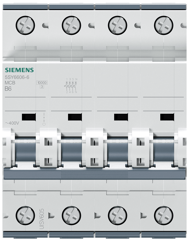 Interruttore magnetotermico 400V 6kA, a a 3+N poli B, 6A, P=70mm Interruttore magnetotermico SENTRON 5SY per la protezione da cortocircuito e sovraccarico sicura in edifici residenziali, funzionali e per applicazioni industriali specifiche. Montaggio e smontaggio dell'apparecchio senza attrezzi con l'ausilio di un cursore doppio. Combinazione qualsiasi di conduttori e sbarra collettrice grazie al morsetto a doppia camera. Semplice cablaggio dell'alimentazione mediante la sbarra collettrice posteriore. Gli interruttori magnetotermici 5SY sono disponibili in esecuzione a 1, 2, 3, 4 poli nonché a 1 polo +N e a 3 poli +N. Tutti gli accessori sono uniformemente utilizzabili per tutti gli interruttori magnetotermici 5SY. Semplicemente sicuri con gli apparecchi di protezione di SENTRON.