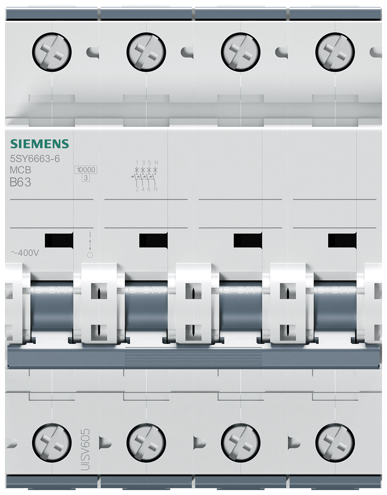 SIEMENS - Interruttore magnetotermico 400 V 6 kA, a 3+N poli B, 63 A, P=70 mm 5SY66636