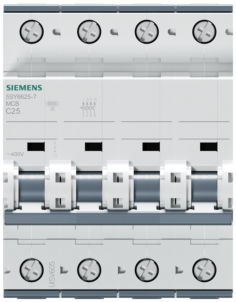 SIEMENS - Interruttore magnetotermico 400 V 6 kA, a 3+N poli C, 25 A, P=70 mm 5SY66257
