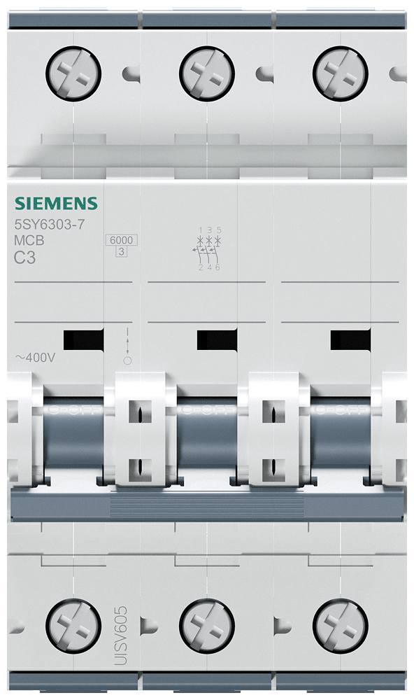 Interruttore magnetotermico 400V 6kA, a 3 poli, C, 3A, P=70mm Interruttore magnetotermico SENTRON 5SY per la protezione da cortocircuito e sovraccarico sicura in edifici residenziali, funzionali e per applicazioni industriali specifiche. Montaggio e smontaggio dell'apparecchio senza attrezzi con l'ausilio di un cursore doppio. Combinazione qualsiasi di conduttori e sbarra collettrice grazie al morsetto a doppia camera. Semplice cablaggio dell'alimentazione mediante la sbarra collettrice posteriore. Gli interruttori magnetotermici 5SY sono disponibili in esecuzione a 1, 2, 3, 4 poli nonché a 1 polo +N e a 3 poli +N. Tutti gli accessori sono uniformemente utilizzabili per tutti gli interruttori magnetotermici 5SY. Semplicemente sicuri con gli apparecchi di protezione di SENTRON.