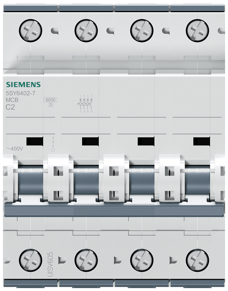 SIEMENS - Interruttore magnetotermico 400 V 6 kA, a 4 poli, C, 2 A, P=70 mm 5SY64027