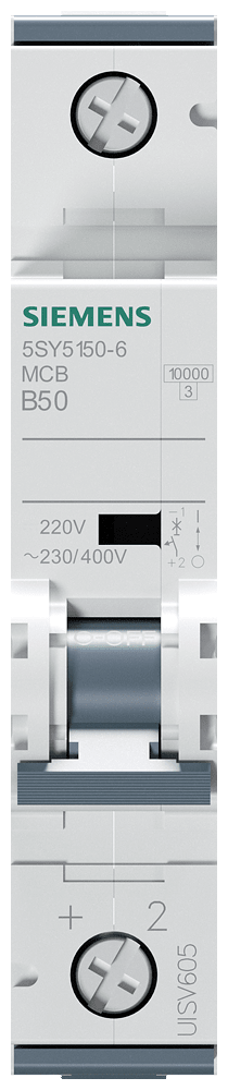 SIEMENS - Interruttore magnetotermico corrente universale DC 220 V AC 230/400 V 10 kA, a 1 polo, B, 50 A 5SY51506