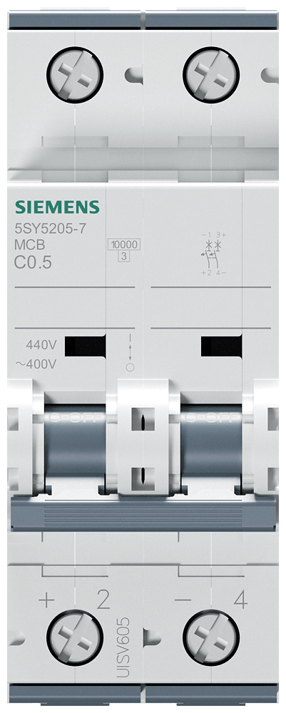SIEMENS - Interruttore magnetotermico corrente universale DC 440 V AC 400 V 10 kA, a 2 poli, C, 0,5 A 5SY52057